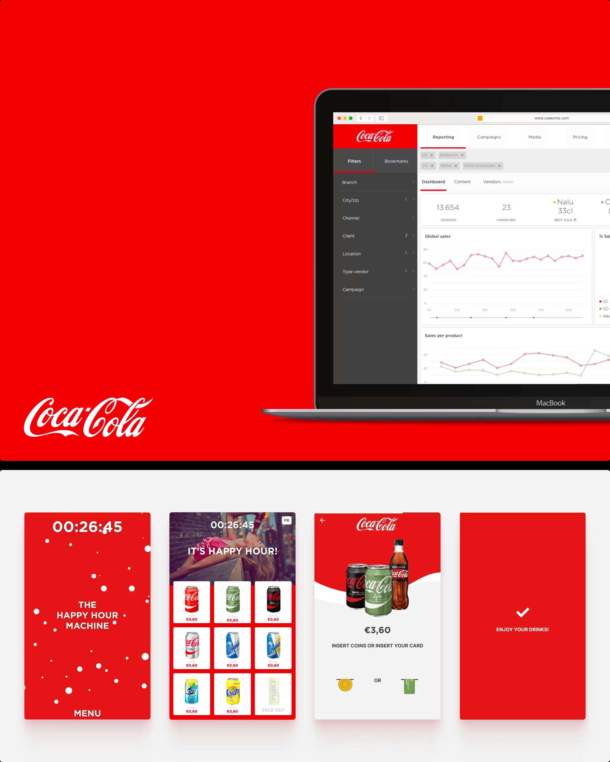 Coca-Cola Europacific Partners had a network of vending machines that didn't talk to each other. Repairs and updates were costly and slow, with every fix or change needing a technician on site. Without real-time data, restocking was guesswork and missed sales were common. When we were asked to design the UX/UI for new screen and internet-enabled vending machines, we saw a bigger opportunity: these machines could finally make sales and marketing campaigns targeted and localized. It was the perfect moment to rethink vending: how do you make every update instant, every machine smarter, and every campaign more targeted?